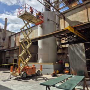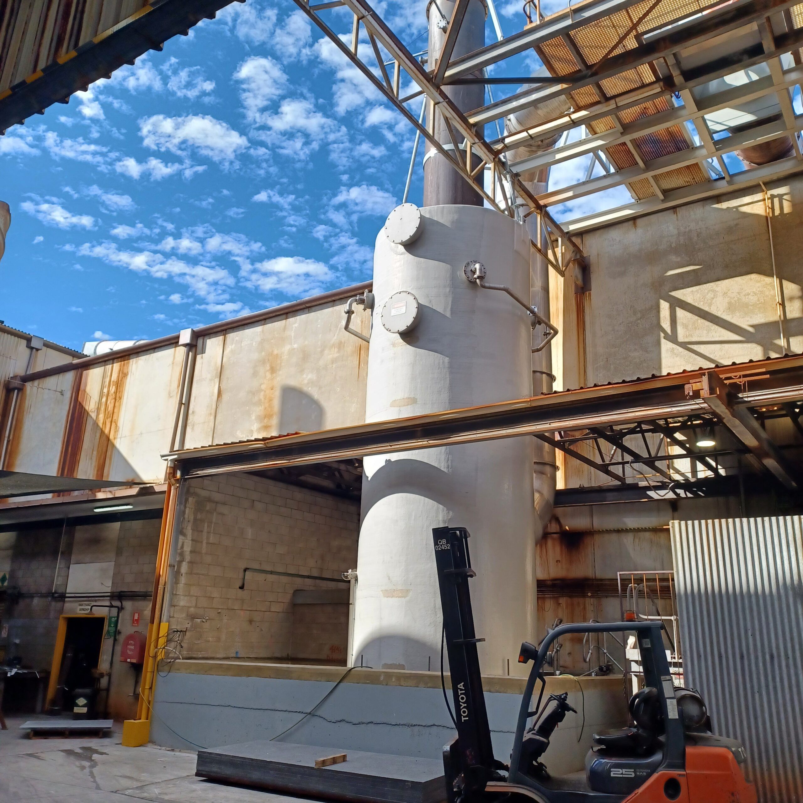 Manufactured using corrosion-resistant fibreglass materials, the vessel was designed to provide long-term durability, structural integrity, and compatibility with aggressive scrubbing liquids and process air streams typical of galvanising operations.