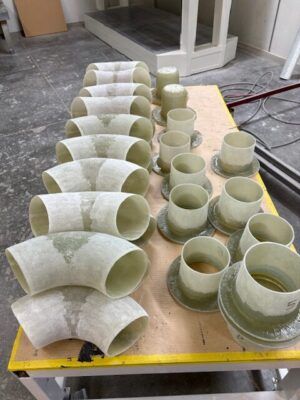 Chemical-resistant GRP ducting, bends, and reducers